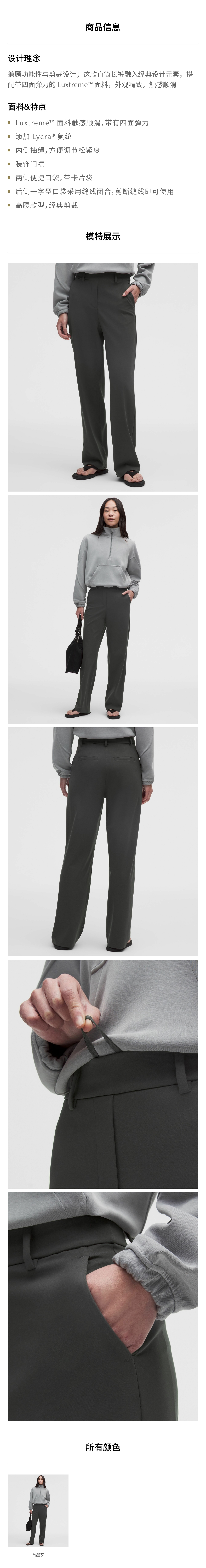 女士高腰直筒长裤